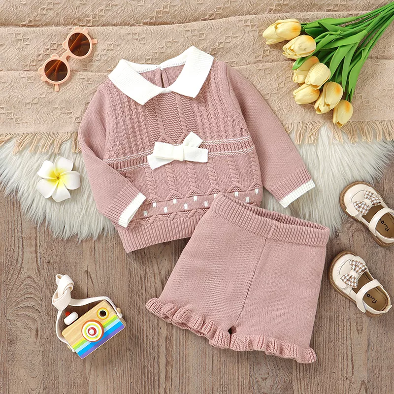 Winter Knit Baby Girl Dress with Bow – Long Sleeve Warm A-Line Outfit