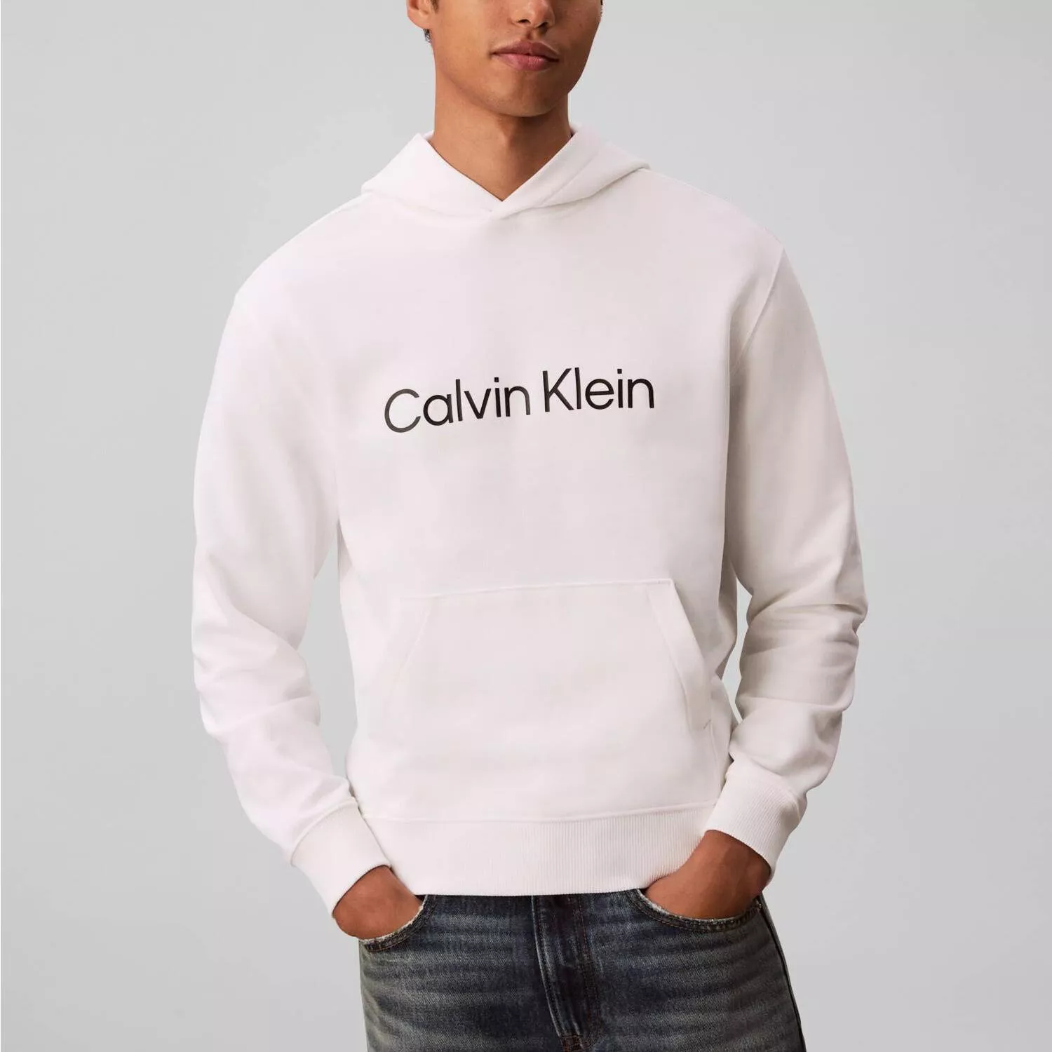 Calvin Klein Men’s White Printed Cotton Hoodie Sweatshirt