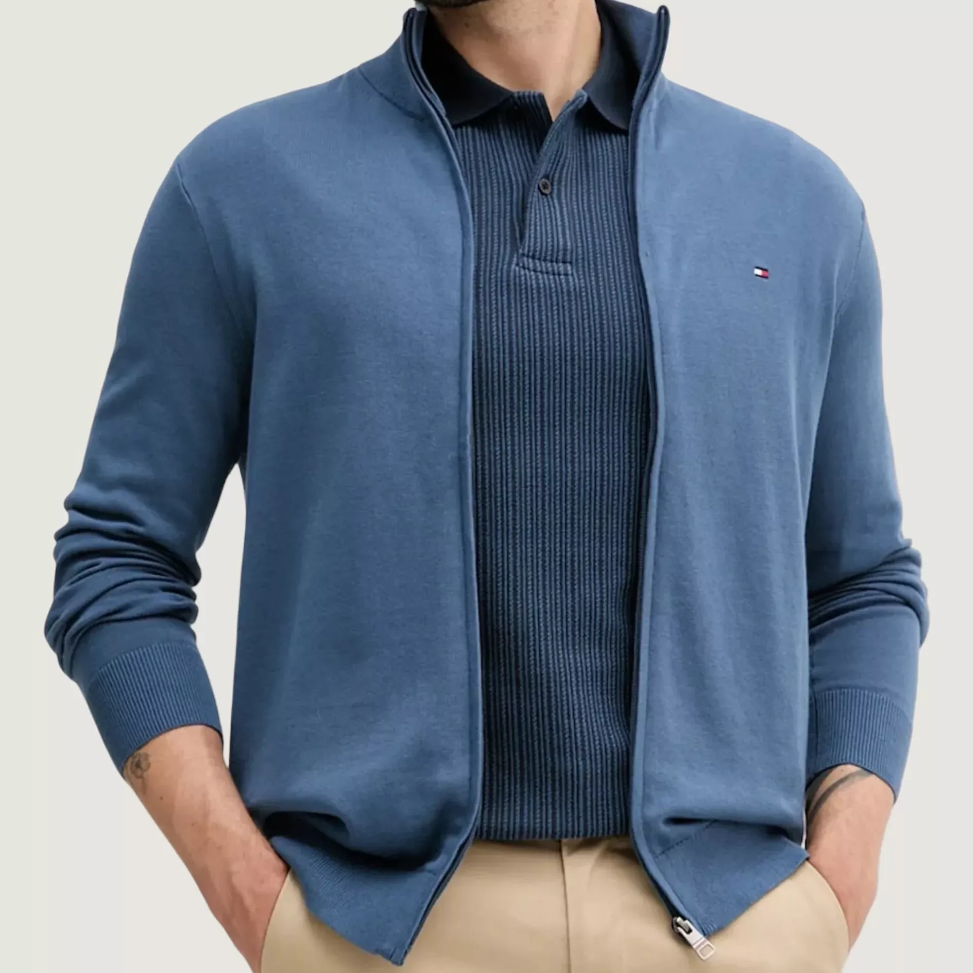 Tommy Hilfiger Men’s Blue Cotton Cardigan with Turtleneck