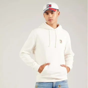 Tommy Hilfiger Jeans Men’s White Cotton Hoodie Sweatshirt