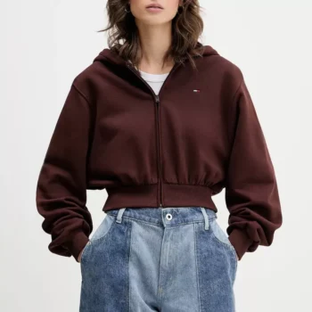 Tommy Hilfiger Jeans Women’s Brown Organic Cotton Zip Hoodie Sweatshirt