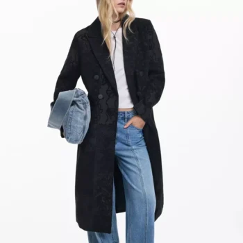 Desigual Black Floral Coat with Lapel Collar