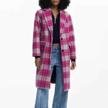 Desigual Pink Checked Wool-Blend Coat