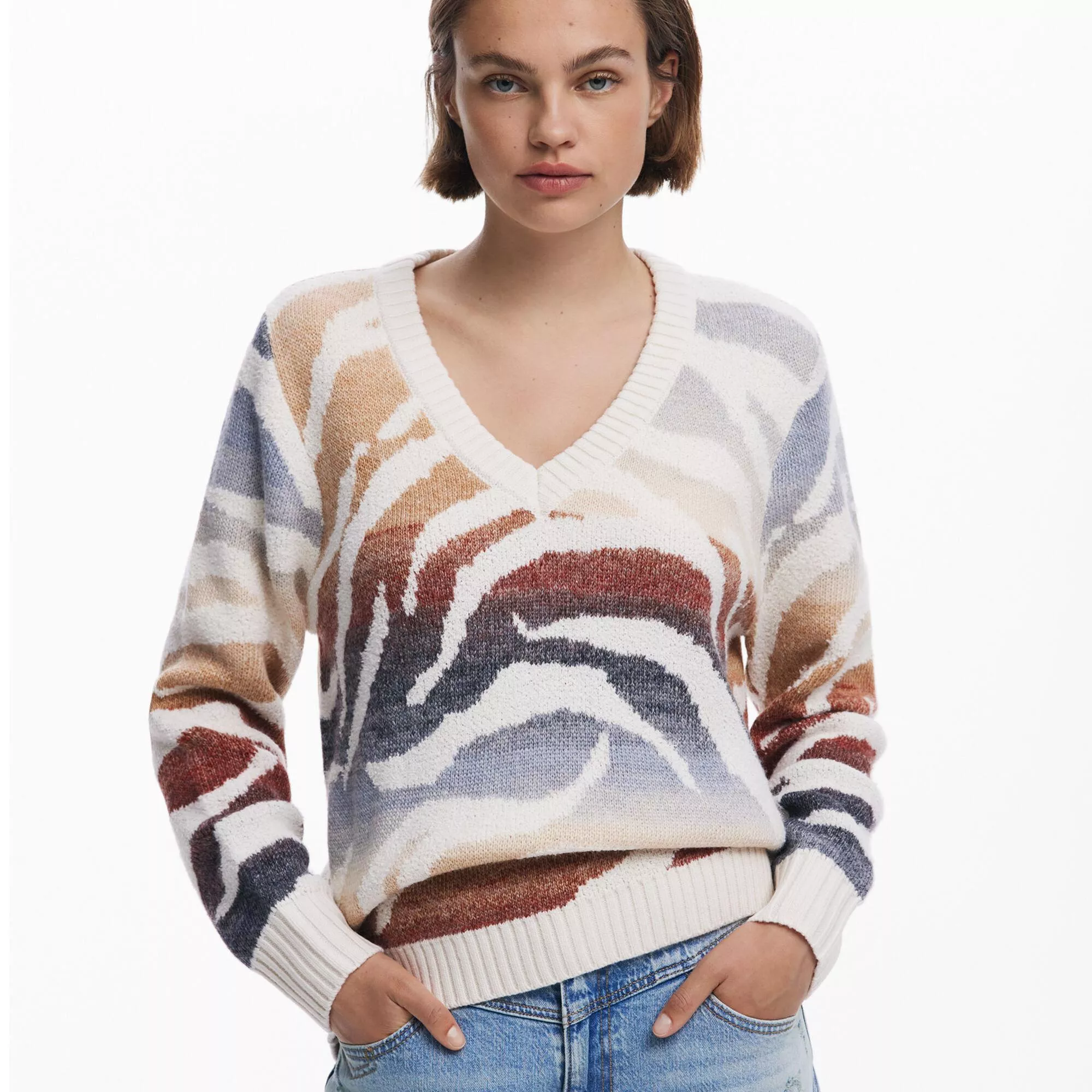 Desigual Women’s Beige V-Neck Knitwear Sweater
