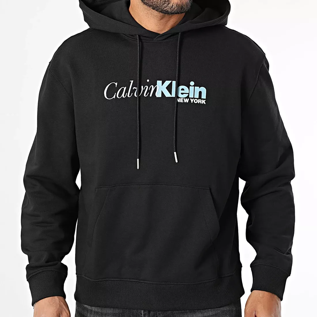Calvin Klein Men’s Black Printed Cotton Hoodie Sweatshirt