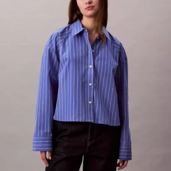 Calvin Klein Jeans Women’s Blue Stripe Cropped Boxy Button-Down Shirt