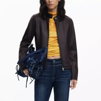 Desigual Women’s Brown Faux Leather Short-Sleeve Blazer