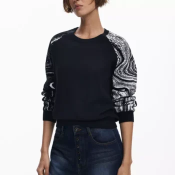 Desigual Black Knit Sweater – Women’s Round Neck Long Sleeve