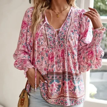 Bohemian V-neck Long Sleeve Top for Women