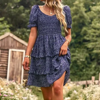 Elegant Printed Short Sleeved Dress for Spring/Summer