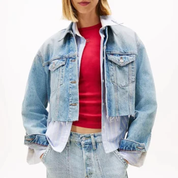 Tommy Hilfiger Jeans Women’s Oversized Cropped Denim Jacket with Back Logo