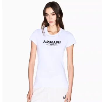 Armani Exchange Women’s White Printed Cotton T-Shirt