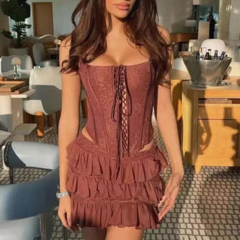 Elegant Summer A-Line Party Dress with Lace-Up Detail
