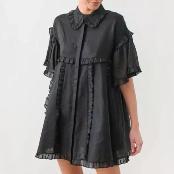 Elegant V-Neck Mini Dress with Lantern Sleeves and Lace-Up Back