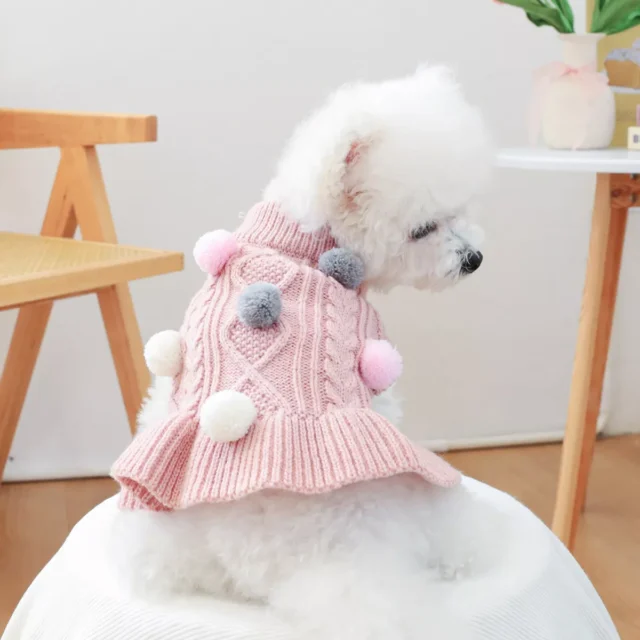 Crafted from soft, breathable wool, this pet sweater features a sweet solid-color design finished with colorful wool balls, creating a playful look that’s perfect for cold-weather outings. The sleeveless, pullover style makes dressing quick and fuss-free—no buttons, no zippers—just slip it on and go. It hugs your pet’s body comfortably without restricting movement, offering both warmth and freedom to play.