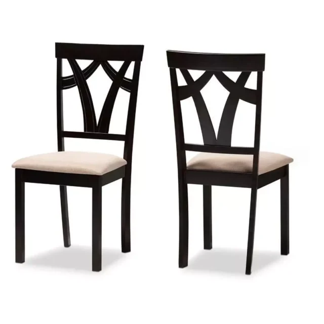 Contemporary Sand Fabric Dining Chairs, Set of 2 – Espresso Finish