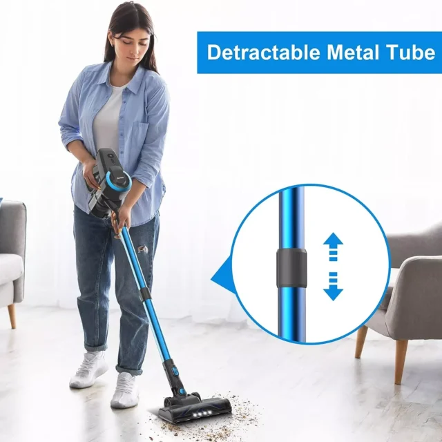 Weighing under 3.9 lbs, this stick vacuum is ultra-lightweight and easy to maneuver. The slim build and detachable handheld option make it perfect for cleaning high places, tight corners, and even your car interior—without straining your arms.