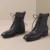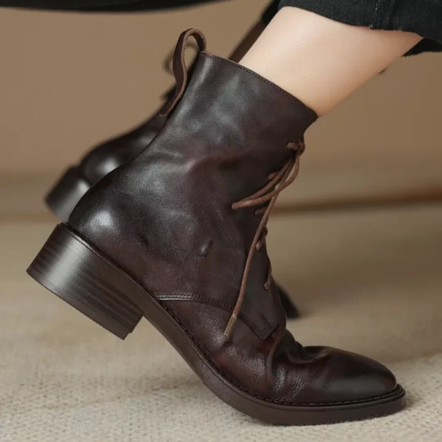 Featuring a unique lace-up design with a side zipper, these ankle boots provide an easy, customizable fit. The sleek, solid design ensures versatility, allowing you to pair them effortlessly with jeans, skirts, or dresses. Ideal for autumn weather, the genuine leather construction helps keep your feet comfortable while the rubber outsole provides reliable traction as you walk. With a low heel and a rounded toe, these boots offer both support and style, making them a must-have for your fall footwear collection.