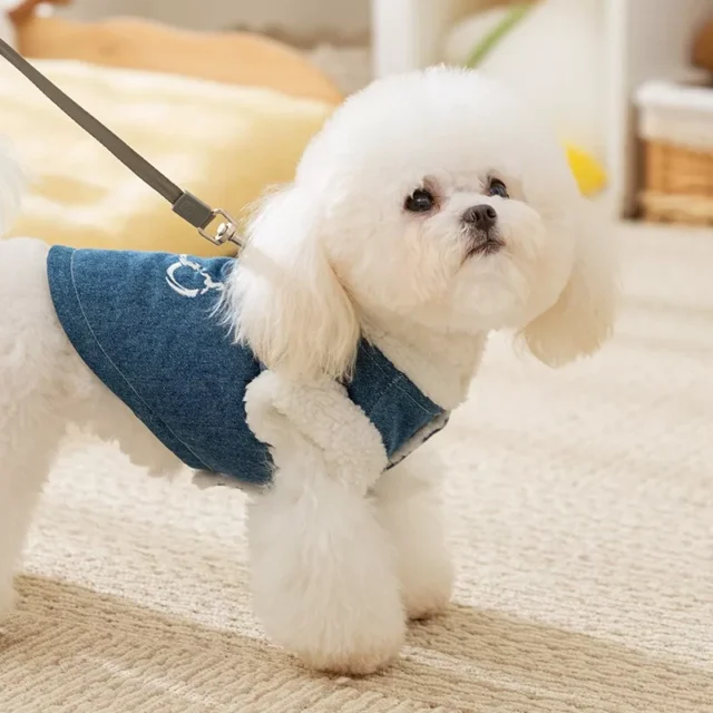 This cozy denim dog jacket is designed to keep your furry friend warm, comfortable, and effortlessly stylish during the chilly months. Made from soft polyester fiber with plush cotton padding, it provides excellent insulation while remaining lightweight and breathable. The adorable embroidered bear detail and trendy denim look make it perfect for dogs and cats who love to stand out on every walk.
