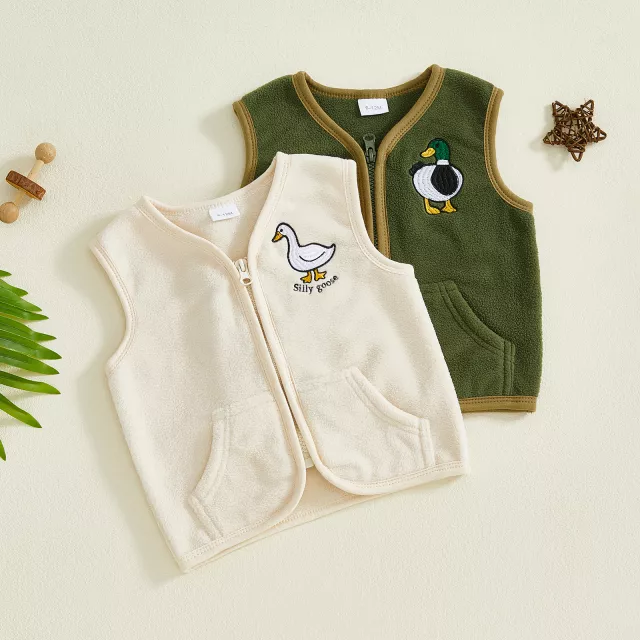 Cozy Toddler Fleece Zip Vest with Duck Embroidery & Pockets