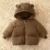 Our Baby Down Parka is thoughtfully designed with a blend of cotton and polyester, ensuring a soft, comfortable fit that’s just right for your child. The 100% down filling provides excellent insulation, while the hooded collar adds an extra layer of warmth. Available in chic beige-coffee color, this solid patterned jacket is as fashionable as it is functional.
