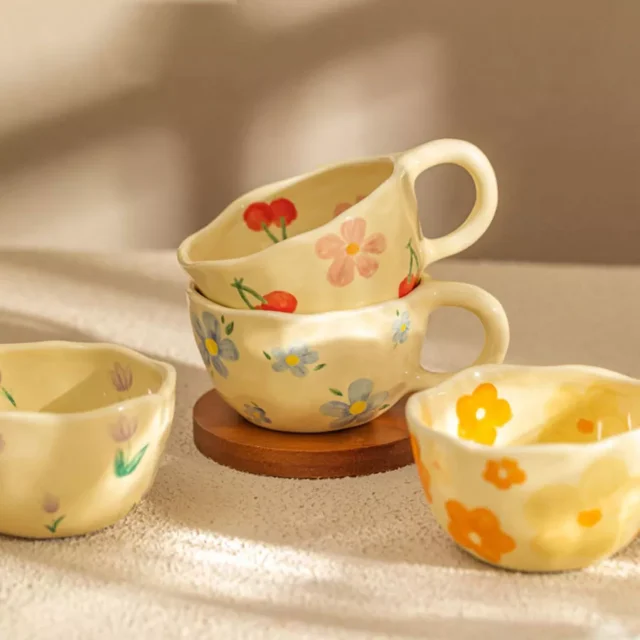 The ergonomic handheld design makes it easy to grip and perfect for daily use at home, in the office, or as a thoughtful gift. With a glossy finish and vivid flower pattern, it adds personality and flair to any tabletop or workspace. The mug is crafted from durable ceramic pottery, ensuring it retains heat well and stands up to everyday use.