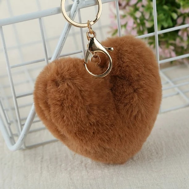Introducing our adorable Cute Heart Keychain Pom Pom, the perfect accessory to add a touch of charm to your bags, keys, or even cars! Crafted with faux rabbit fur in a delightful heart shape, this keychain is a must-have for every fashion enthusiast.