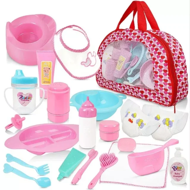 Our set stands out with its attention to detail and quality. It includes a beautifully designed dinner plate and a learning cup, perfect for interactive play sessions. The gender-neutral design makes it an ideal gift for all children, encouraging them to engage in nurturing and imaginative play. The accessories are made of durable resin, ensuring they are safe and long-lasting for children aged 12 and up.