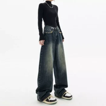 Women’s Nostalgic Blue Wide Leg Jeans – High Waist Vintage-Inspired Fashion