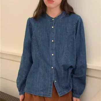 Chic Autumn Denim Jacket – Women’s Loose Full Sleeve Retro Shirt Coat