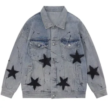 Women’s Retro Graffiti Star Denim Jacket – Streetwear Punk Fashion