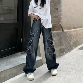 2023 Wide Leg Hip Hop Street Jeans – Women’s Mid-Waist with Appliques