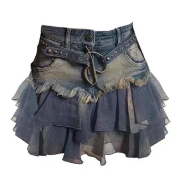 Y2k Vintage Patchwork Denim Mini Skirt – Summer Harajuku A-line Fashion