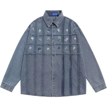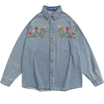 Embroidered Floral Denim Shirt – Vintage Harajuku Streetwear for Spring/Summer