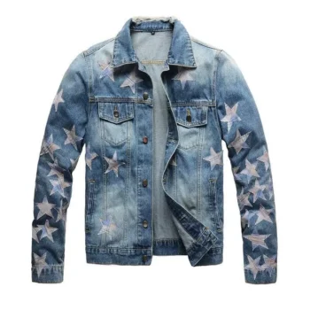 Men’s Patchwork Denim Jacket – Slim Fit Streetwear Cotton Coat