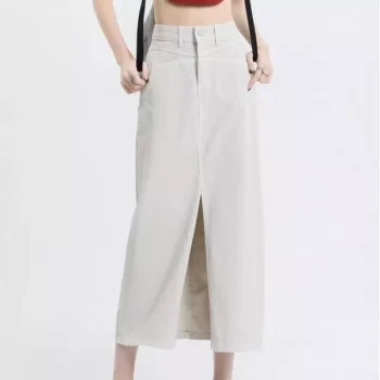 Vintage High Waist Denim Skirt – Casual Split Long Skirt
