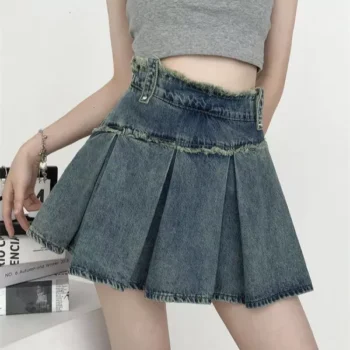 High Waist Denim Pleated Mini Skirt | Vintage A-Line Streetwear