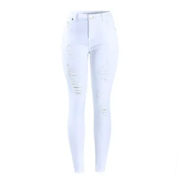 Mid-Waist Distressed Skinny Jeans – Stretch Denim Ripped Pants for Women