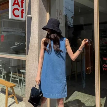 Summer Sleeveless Denim Mini Dress – Casual Women’s Cotton Vest