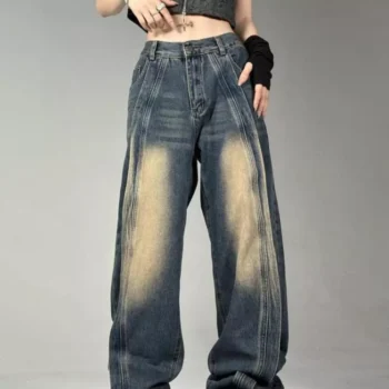 Y2K Gothic Wide-Leg Retro Jeans – Unisex Washed Streetwear Denim