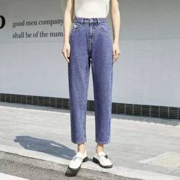 Women’s Tapered Cotton Denim Trousers – Slim Pencil Pants for Autumn