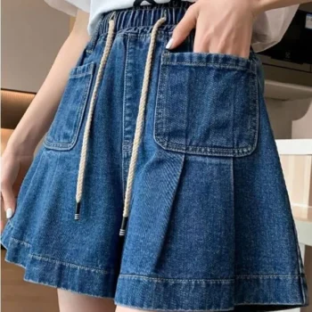 High-Waist Denim Shorts – Plus Size Korean Casual Summer Fashion
