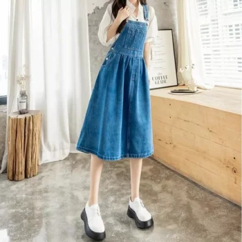Summer Midi Denim Sundress – Sleeveless A-Line Tank Dress with Pockets