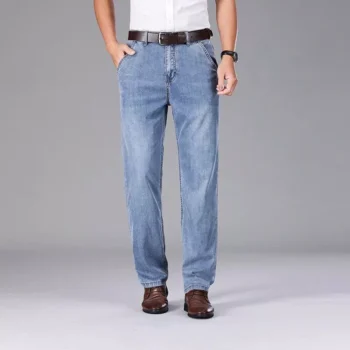 Men’s Lyocell Blend Lightweight Straight-Fit Jeans – Summer Casual & Business