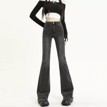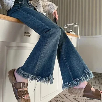Vintage High-Waist Tassel Flared Jeans – Stretch Cotton Denim