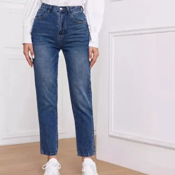 High Waist Straight Ankle-Length Jeans – Vintage Stretch Denim for Women