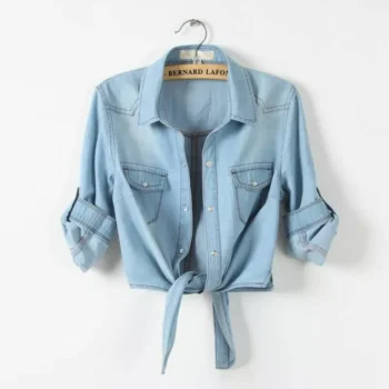 Summer Chic Denim Crop Top – Women’s Slim-Fit Short Sleeve Shirt