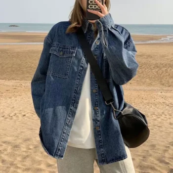 Spring/Autumn Vintage Washed Long Sleeve Denim Shirt – Women’s Casual Loose Coat