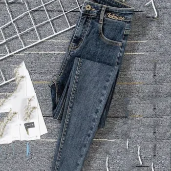 High Waist Skinny Ankle Jeans – Stretch Denim Embroidery Pencil Pants for Women