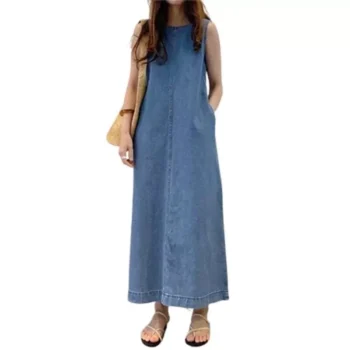 Chic Sleeveless Denim Maxi Dress – Summer Casual with Pockets for Women